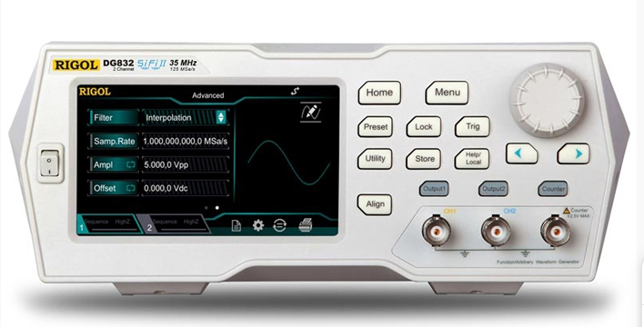 Универсальный генератор сигналов DG822 обладает низким уровнем собственных шумов и высокой функциональностью. Генератор сигналов DG822 предлагает инженерам большое количество форм сигналов, в том числе псевдослучайные последовательности, сигнал RS-232, программируемые последовательности, а также различные виды модуляции.