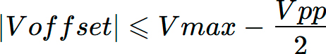 | Ограничение уровня | , гдеVoffset – установлено значение постоянного смещения Vmax - максимальное пиковое напряжение на выходе с учётом выходного сопротивления Vpp – установленное значение выходного уровня сигнала | |