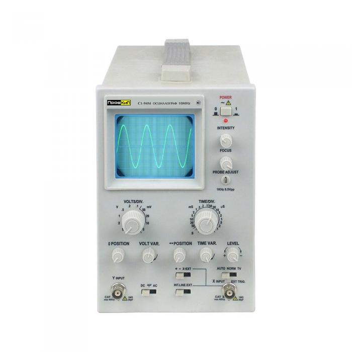 Осциллограф универсальный ПрофКиП С1-94М предназначен для исследования формы периодических электрических сигналов путем визуального наблюдения и измерения амплитуд в диапазоне от 0 МГц до 10 МГц. Простота в обращении и высокая надежность делают осциллограф универсальный ПрофКиП С1-94М идеальным прибором с превосходными характеристиками для широкого спектра измерений, необходимых в исследованиях, производстве, в сфере образования и во многих других сферах применения. и рекомендован при комплектации лабораторий и классов учебных учреждений.