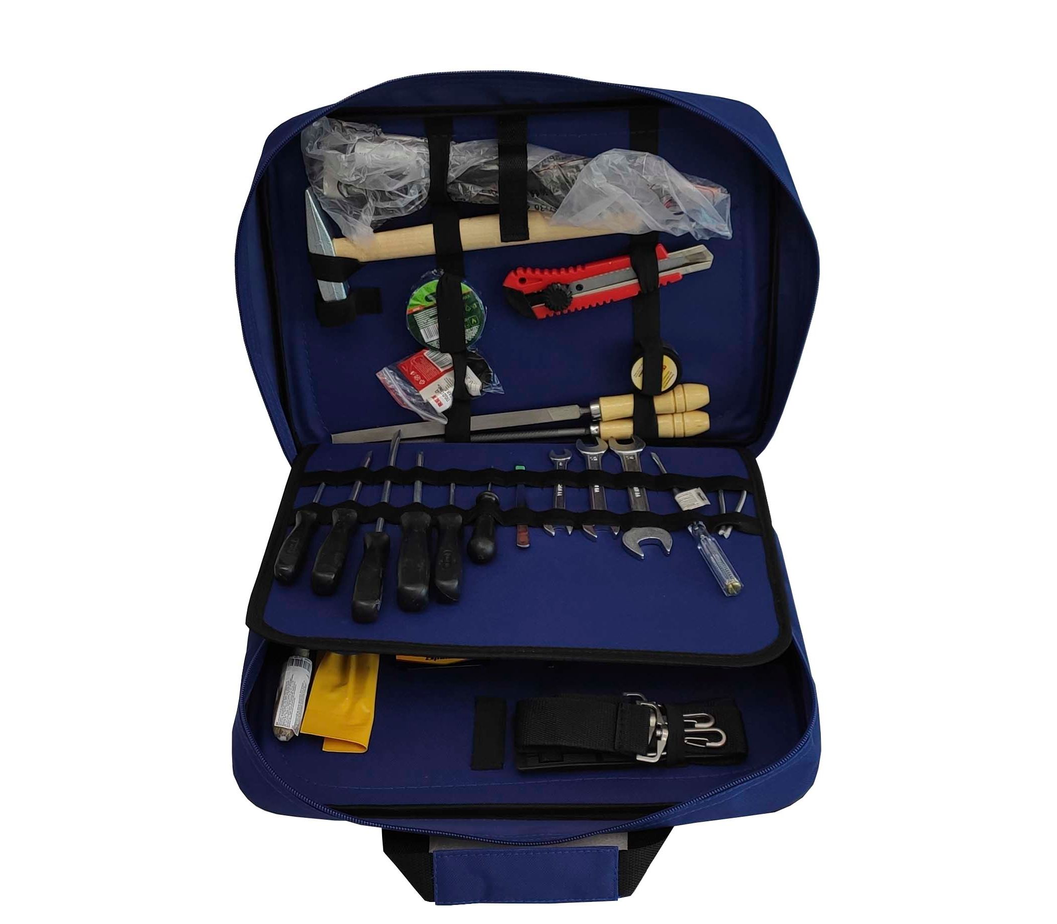 Комплект КИН-ЭХЗ состоит из плоскогубцев, круглогубцев, кусачек, отверток, гаечных рожковых ключей, комплекта надфилей, молотка, лупы, указателя напряжения, паяльника, монтерского ножа.