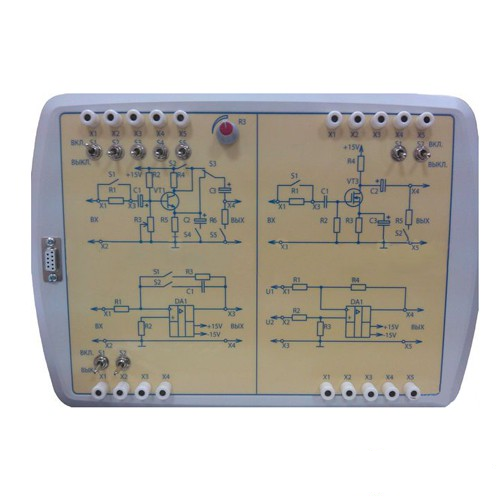 Лабораторные стенды "Промэлектроника" предназначены для изучения характеристик и параметров основных типов аналоговых электронных устройств. Изучаются различные типы однокаскадных усилителей, включенных по схемам с общим эмиттером (ОЭ), с общим коллектором (ОК) или с общим истоком (ОИ).