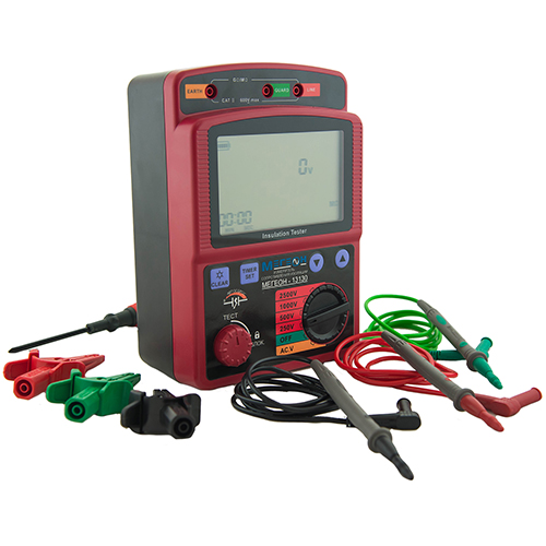 Функция автоматического выбора диапазона, измерение по таймеру и оповещение при обнаружении напряжения в исследуемой сети обеспечивают проведение точных и безопасных измерений. Мегаомметр оснащен большим ЖК-дисплеем с интегрированной светодиодной подсветкой, что позволяет работать с прибором даже в темное время суток. Кроме функций, характерных для всех приборов данного ценового диапазона, мегаомметр Мегеон 13130 также оснащен функцией автоматической разрядки, что в свою очередь обеспечивает безопасность пользователя при работе с прибором.