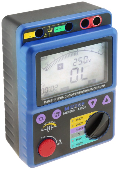 Измеритель сопротивления изоляции МЕГЕОН 13900 представляет собой портативный контрольно-измерительный приборы для проверки сопротивления изоляции с использованием высоких значений испытательных напряжений оснащен USB интерфейсом. Измеритель сопротивления изоляции (мегаомметр) внесен в государственный реестр СИ, под номером 74507-19, срок периодической поверки составляет два года.