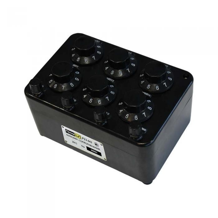 Магазин сопротивления ПрофКИП Р33 (разработка 2020 года) предназначен для воспроизведения значений электрического сопротивления постоянному току и для применения в качестве многозначной меры электрического сопротивления (ММЭС) в цепях постоянного тока. Принцип действия магазинов сопротивлений заключается в воспроизведении необходимых значений сопротивлений с помощью резистивных элементов. Конструктивно магазины сопротивлений состоят из последовательно соединенных равнономинальных прецизионных резисторов, установленных в каждой декад.