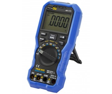 | Мультиметры переносные ПрофКиП МП-177 предназначены для измерения напряжения постоянного и переменного тока, силы постоянного и переменного тока, сопротивления постоянному току, электрической ёмкости и частоты. Приборы оснащены жидкокристаллическими дисплеями для индикации результатов измерений. Мультиметры отличает компактность, незначительная масса и возможность автономного питания в различных условиях эксплуатации. Мультиметры предназначены для использования в цеховых и лабораторных условиях, при наладке и ремонте радиотехнического оборудования, электронных схем и узлов автоматики, а также при тестировании и ремонте промышленных электросетей. Высокоточный прибор для измерения параметров тока, напряжения и сопротивления. Модель позволяет работать с током AC до 10А и DC до 20А, напряжением AC до 750В и DC до 1000В, а также сопротивлением до 60МОм. Дополнительно измеряет ёмкость до 60мФ и частоту сигнала до 9999кГц. Температурный диапазон от -50 до +400°C. Инновационный дисплей с подсветкой обеспечивает четкость показаний. Функции включают встроенный фонарик, авто/ручное изменение диапазонов, HOLD, индикатор заряда батареи, бесконтактный индикатор напряжения |