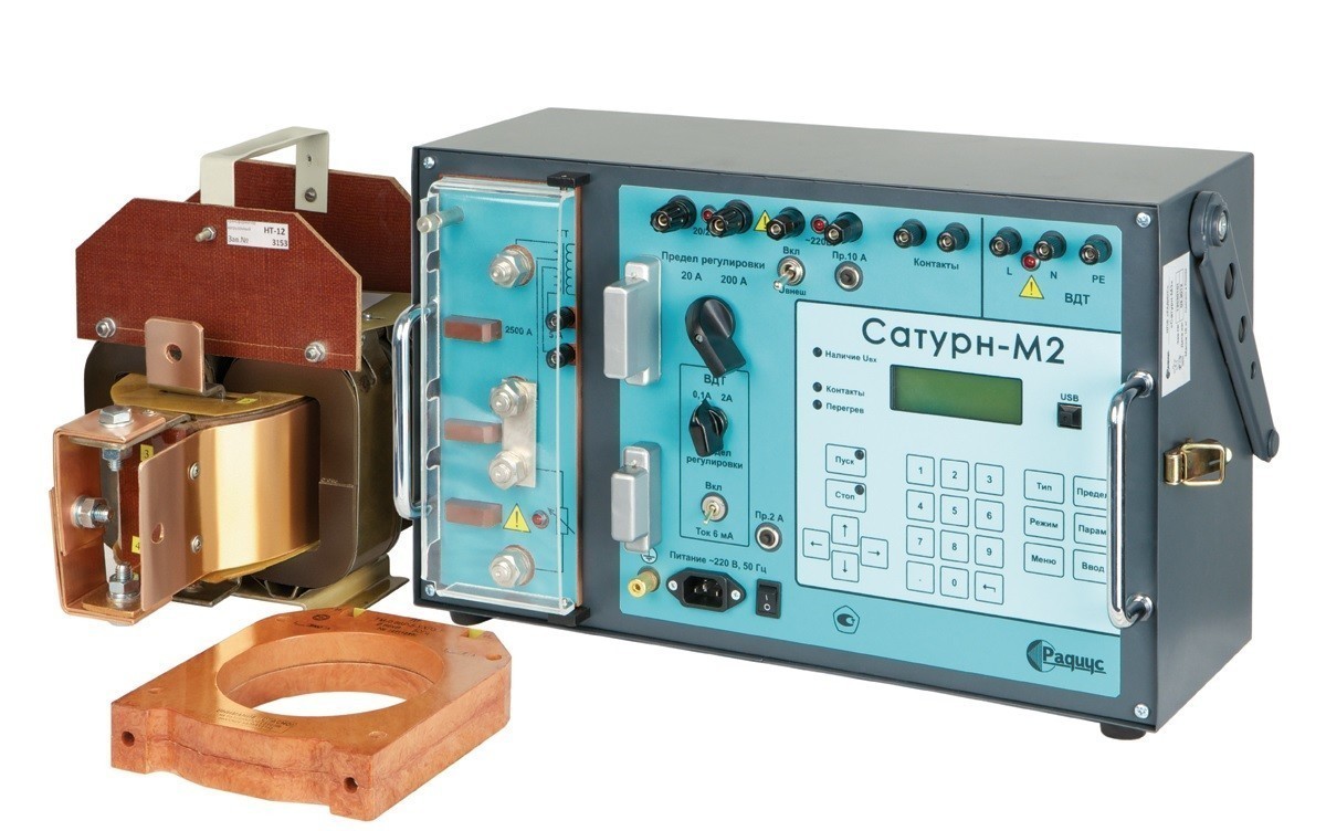 Комплектные испытательные устройства «Сатурн-М2» и Сатурн-М3 предназначены для проверки характеристик автоматических выключателей переменного тока с электромагнитными, тепловыми, полупроводниковыми и электронными расцепителями на местах их установки, а также в лабораториях путем регулировки тока, протекающего через проверяемый автоматический выключатель, измерения времени и действующего значения тока в момент срабатывания автомата.