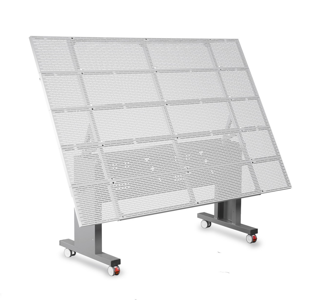 Ширина стола по опорам 1425 × 690 мм. Перфорированная рабочая поверхность 3 типов – шириной 1500, 1800, 2000 мм и