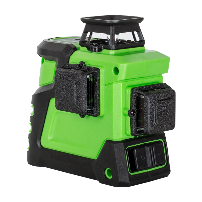 Компенсатор автоматически выравнивает лазерный луч в диапазоне ±3°. Благодаря этому, вам не нужно выставлять прибор по пузырьковому уровню. Также, за счет компенсатора, избегается искажения лазерных плоскостей от мелких неровностей пола. При отклонении прибора более, чем на 3° раздается звуковой сигнал, а лазерная линия начнет мигать.